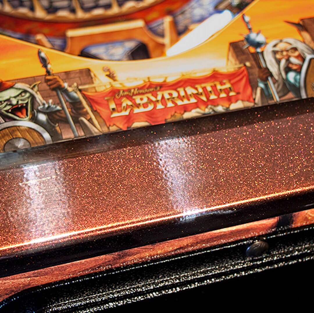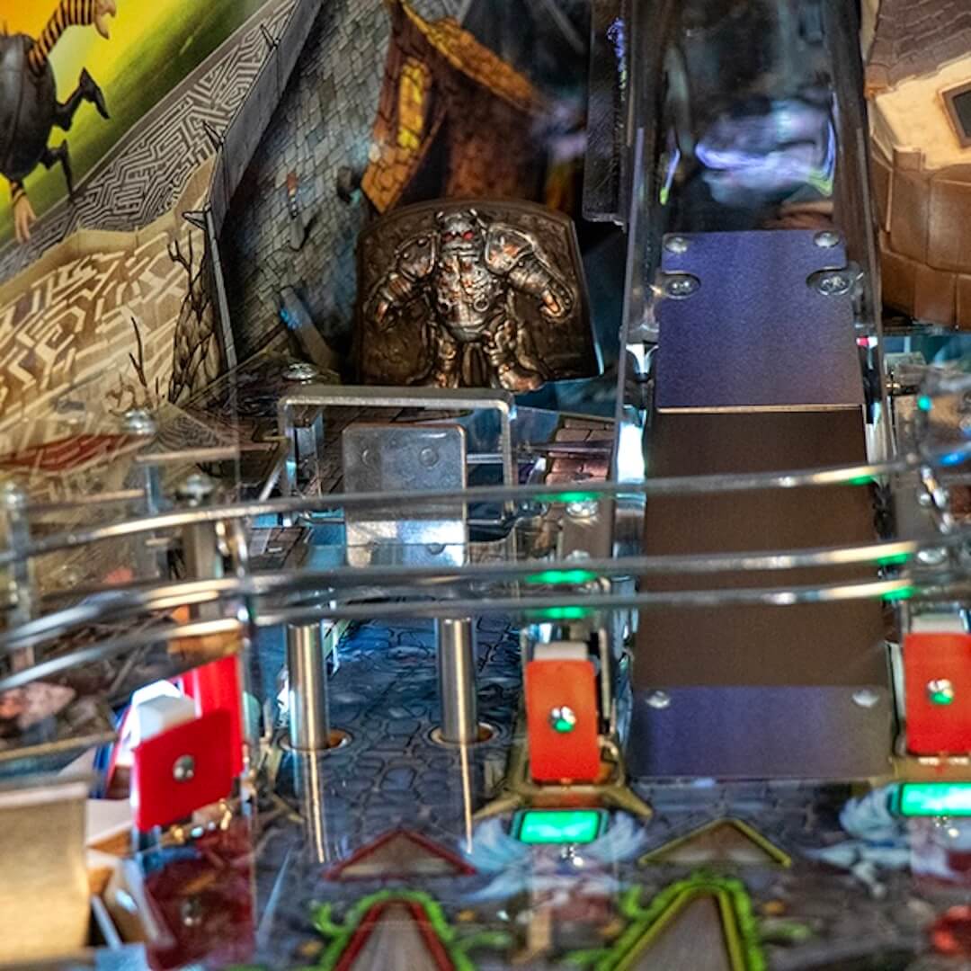 La qualité de fabrication se remarque dans chaque aspect de la machine. Le flipper Labyrinth bénéficie d’un plateau richement décoré, de rampes élégantes, d’un système audio puissant et de matériaux premium. L’ensemble crée une cohérence visuelle et tactile qui dépasse les standards habituels. Le jeu ne se contente pas de reproduire un univers connu : il en propose une relecture ludique et interactive, fidèle à l’esprit du film tout en apportant sa propre signature.