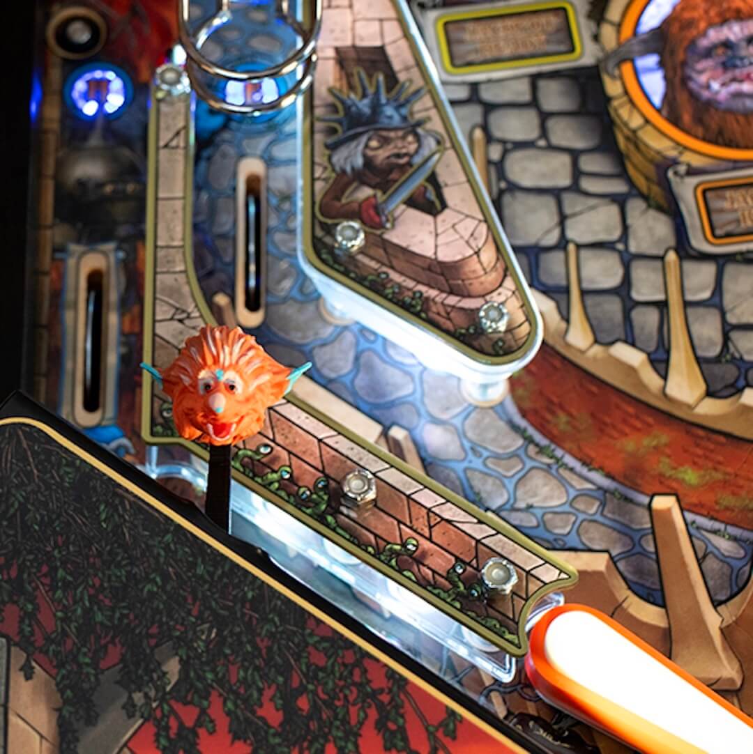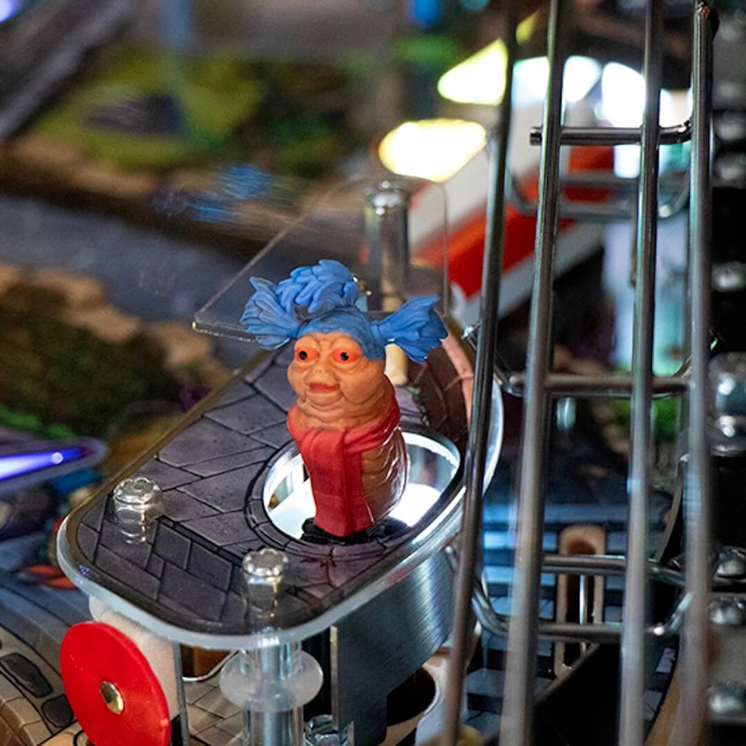 Fidèle à l’univers visuel du film, le flipper Labyrinth séduit par la richesse de ses détails. Le plateau reproduit les scènes clés du film avec une grande précision : le château du roi des gobelins, la porte à double choix, les murs vivants, les marionnettes mythiques ou encore la fameuse horloge. Chaque jouet mécanique, chaque élément sculpté et chaque effet lumineux est pensé pour renforcer l’immersion. La musique originale, accompagnée de séquences vocales extraites du film, accompagne le jeu et contribue à créer une atmosphère enveloppante, digne d’un véritable conte de fées moderne.
